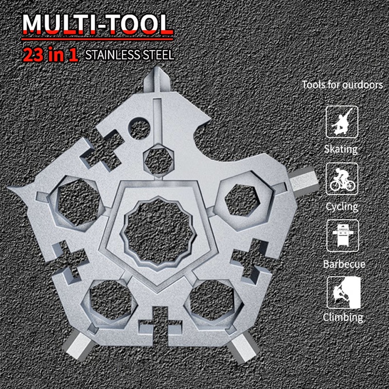 23 In 1 Pentagon Multi-function Snowflake Inner Six Angle Wrench Tool Outdoor EDC Screwdriver Bicycle Combination Tool - Silver