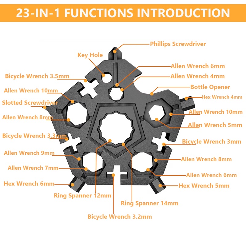 23 In 1 Pentagon Multi-function Snowflake Inner Six Angle Wrench Tool Outdoor EDC Screwdriver Bicycle Combination Tool
