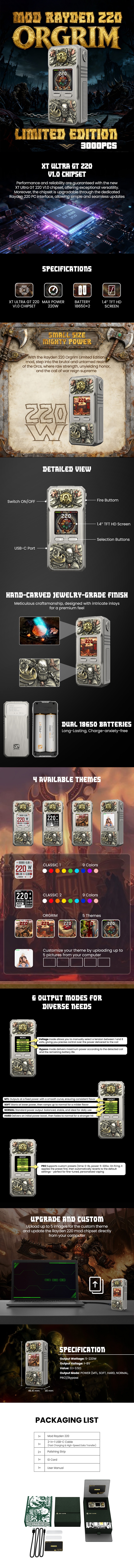 (Ships from Bonded Warehouse)Authentic BDVape Mod Rayden 220 Limited Edition - ORGRIM