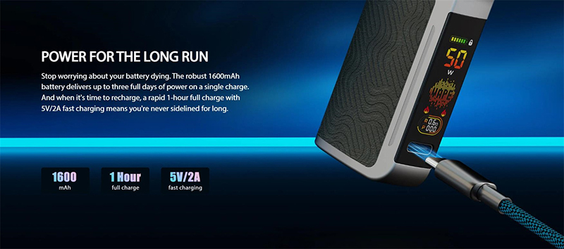 1600mAh battery with 50W max and 2A fast charging