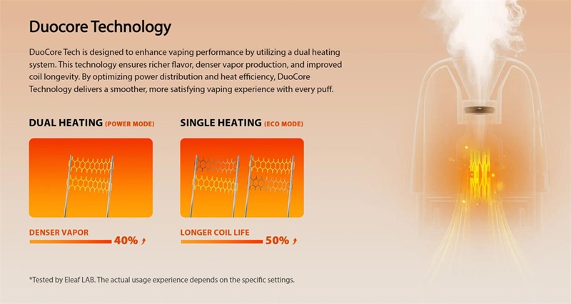 Duocore technology for richer taste, longer coil life