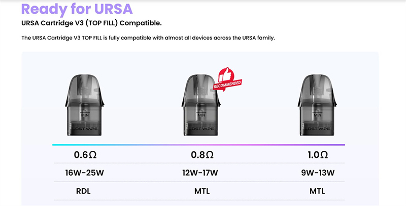 Adopts Ursa Cartridge V3 Top Fill 2.5ml