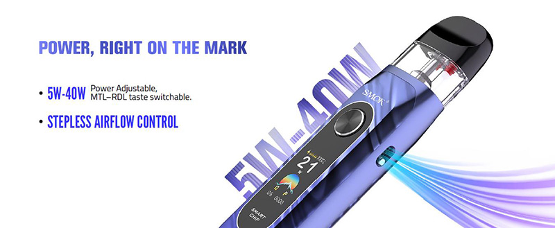 Built-in 1700mAh battery with 40W max for MTL-RDL vaping