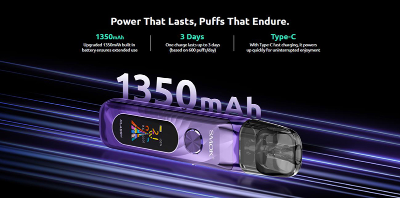 1350mAh battery, type-c fast charging