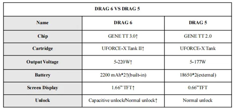 1* Drag 6 Device ( 2* 2200mAh Battery (Built-in) )